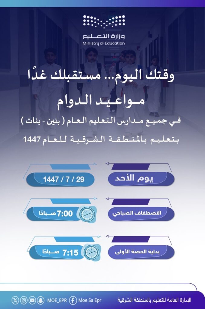 وقتك اليوم… مستقبلك غدًا #تعليمنا_قيم #تعليم_الشرقية