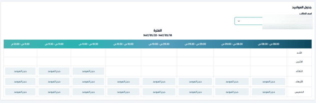 3- اختيار اسم الطالب و تحديد اليوم الوقت للزيارة .