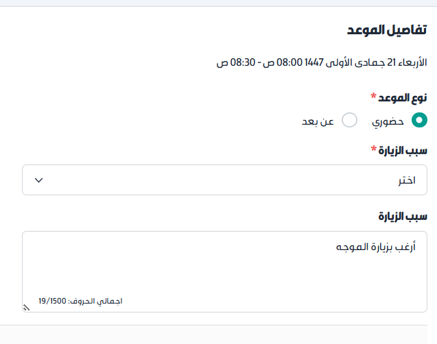 الضغط على زر الحفظ , و بعدها سيتم حجز الموعد لك بنجاح.