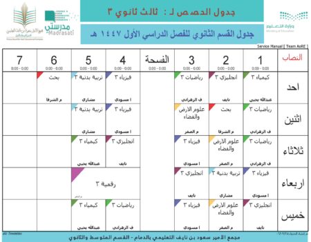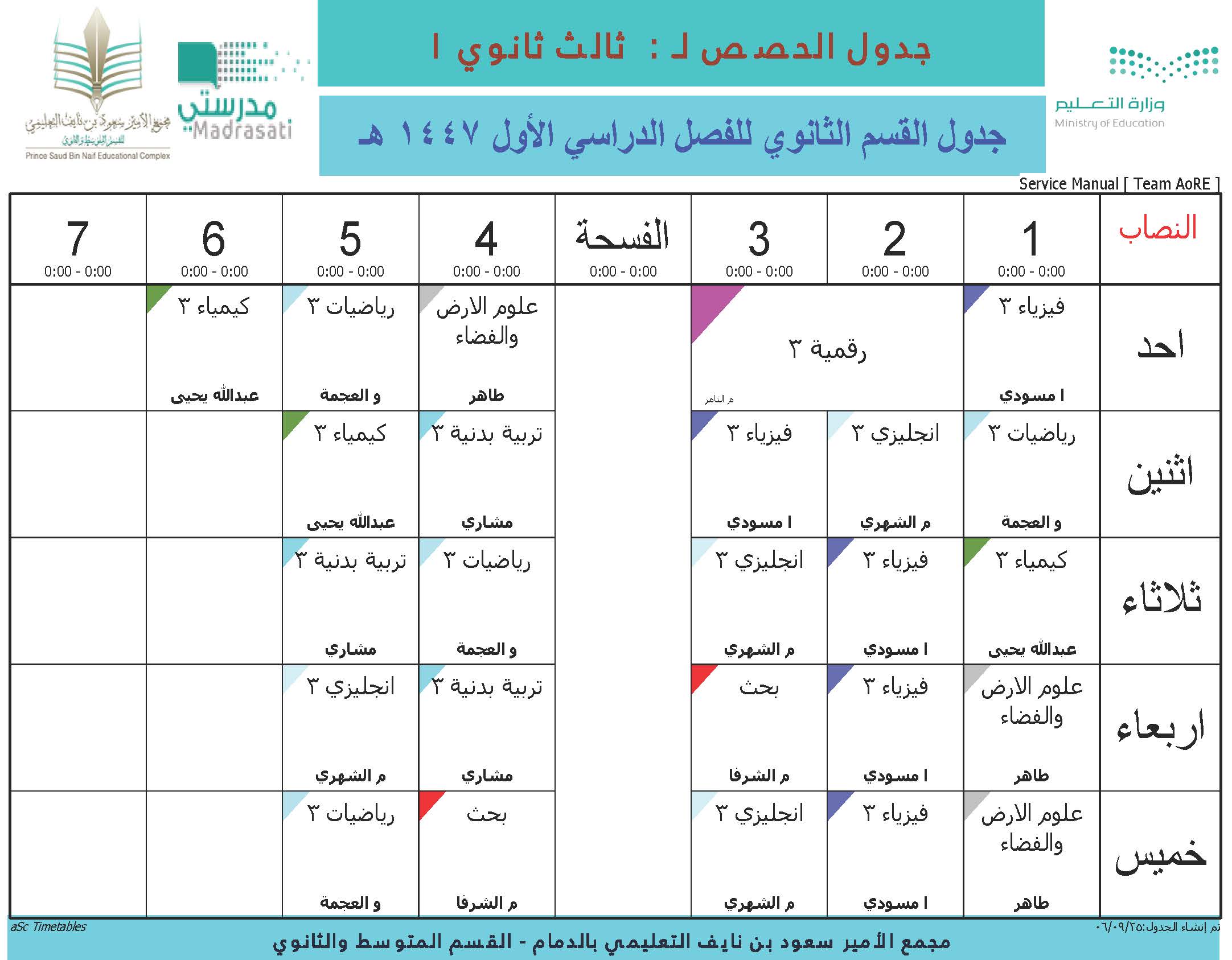 لتحميل الجدول ( ثالث ثانوي – 1 )
