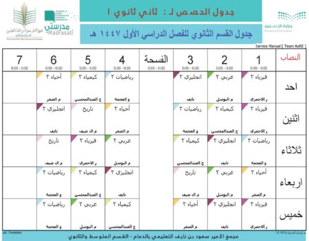 لتحميل الجدول ( ثاني ثانوي – 1 )