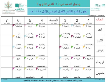 لتحميل الجدول ( ثاني ثانوي – 2 )