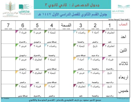 لتحميل الجدول ( ثاني ثانوي – 3 )