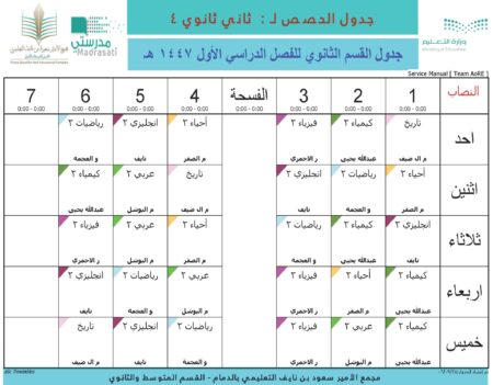 لتحميل الجدول ( ثاني ثانوي- 4 )